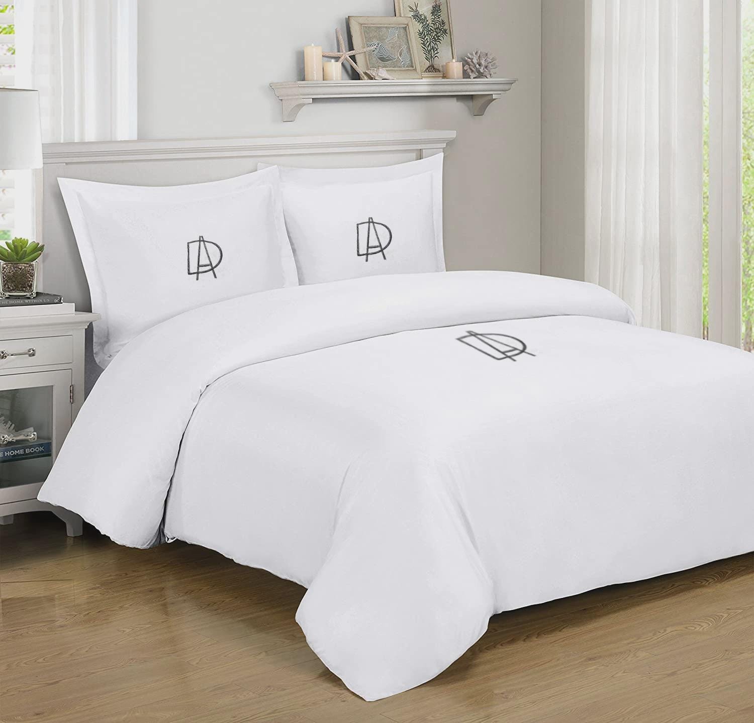 Embroidered Monogram Bamboo Duvet Cover Set – Personalized Bedding -…