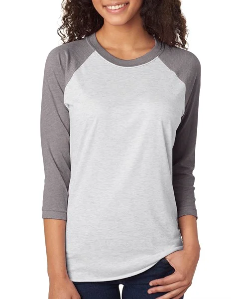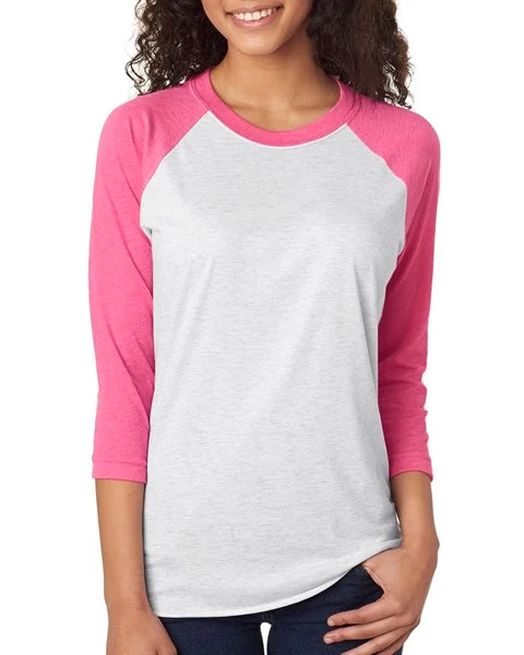 A soft and lightweight Next Level 6051 raglan tee with 3/4 sleeves, triblend comfort, and a classic sporty look that works beautifully for custom apparel, team wear, logo shirts, and easy everyday style.