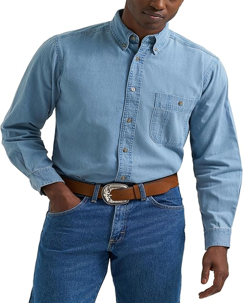 Made from 100% cotton 6 oz. denim, this long sleeve shirt offers a comfortable classic fit with the broken-in look denim lovers want. It features a button-front closure, a left chest pocket with button closure and pencil slot, double button adjustable cuffs, a straight back yoke with center box pleat, and a button-down collar. Garment washing helps give the shirt a softer feel, making it easy to wear for work, travel, events, and everyday layering.